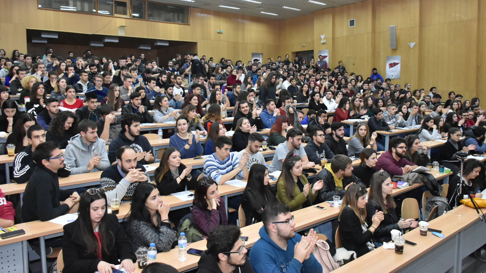 «Οργανώνουμε τον αγώνα μας για να σπουδάζουμε χωρίς εμπόδια, να δουλεύουμε στο αντικείμενό μας με δικαιώματα, κόντρα σε κυβερνήσεις – ΕΕ – ΔΝΤ – μεγαλοεπιχειρηματίες». Αυτό το σύνθημα δέσποζε στο βήμα, στο αμφιθέατρο «Χατζηνικολάου» του ΤΕΙ Πειραιά, όπου διενεργήθηκαν οι εργασίες της 8ης Πανελλαδικής Συνάντησης του Μετώπου Αγώνα Σπουδαστών (ΜΑΣ).