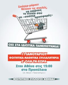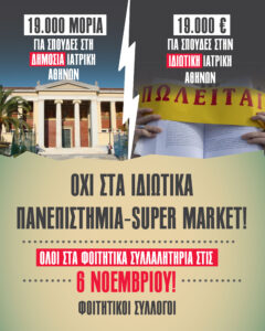 Αφίσα “Όχι στα ιδιωτικά πανεπιστήμια – super market”