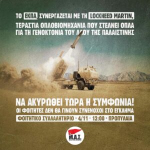 Αφίσες “Καμία συνεργασία του ΕΚΠΑ με το ΝΑΤΟ και τη Lockheed Martin”