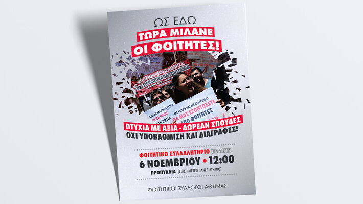 Παλεύουμε για σύγχρονες αποκλειστικά δημόσιες και δωρεάν σπουδές, για πτυχία με αξία και δουλειά με δικαιώματα. Αυτό είναι σήμερα σύγχρονο, αναγκαίο και ρεαλιστικό. Οι φοιτητές και φοιτήτριες να σπουδάζουν απρόσκοπτα και όχι να δουλεύουν για τα βγάλουν πέρα με το τεράστιο κόστος σπουδών. Να στηρίζονται για να ανταπεξέλθουν στις σπουδές τους και όχι να διαγράφονται. Να έχουν καθηγητές, σύγχρονες υποδομές και φοιτητική μέριμνα και όχι τα πανεπιστήμια να βουλιάζουν στην υποχρηματοδότηση. Να παίρνουν πτυχία με αξία, μοναδική προϋπόθεση για να ασκήσουν το επάγγελμά τους και να προσφέρουν στην κοινωνία και όχι πτυχία κουρελόχαρτα στο μεγάλο παζάρι πτυχίων από ιδιωτικά «πανεπιστήμια» super market και δημόσια πανεπιστήμια που λειτουργούν σαν επιχειρήσεις με τους φοιτητές πελάτες!
