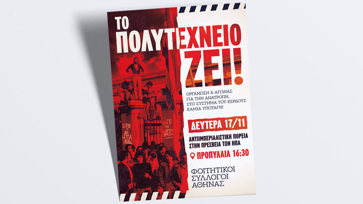 Και το Πολυτεχνείο μας διδάσκει πως η πάλη του λαού αποτελεί το μοναδικό πραγματικό αντίπαλο δέος στους σχεδιασμούς του συστήματος, των κυβερνήσεων και των ιμπεριαλιστικών του ενώσεων. Πώς μόνο με οργάνωση, αγώνα και σύγκρουση με το σύστημα του κέρδους μπορούν να αλλάζουν δεδομένα, να δημιουργούνται ρήγματα στην κυρίαρχη πολιτική.