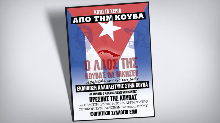 «Ο Φοιτητικός μας Σύλλογος καταδικάζει τις εντεινόμενες απειλές από τις ΗΠΑ και τους συμμάχους τους ενάντια στην Κούβα και εκφράζουμε την αλληλεγγύη μας στον κουβανικό λαό!
