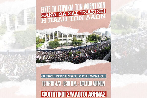 Την Τετάρτη 4 Μάρτη, αναμένεται να ανακοινωθεί η δικαστική απόφαση σχετικά με την ενοχή ή μη των καταδικασμένων μελών της ναζιστικής εγκληματικής Χρυσής Αυγής και το Μέτωπο Αγώνα Σπουδαστών (ΜΑΣ) καλεί με ανακοίνωσή του στην κινητοποίηση εργατικών σωματείων και φοιτητικών συλλόγων εκείνη την ημέρα στις 8.30 π.μ., έξω από το Εφετείο Αθηνών. Όπως αναφέρει, πιο συγκεκριμένα, στην ανακοίνωσή του το…