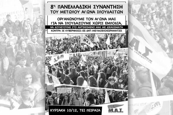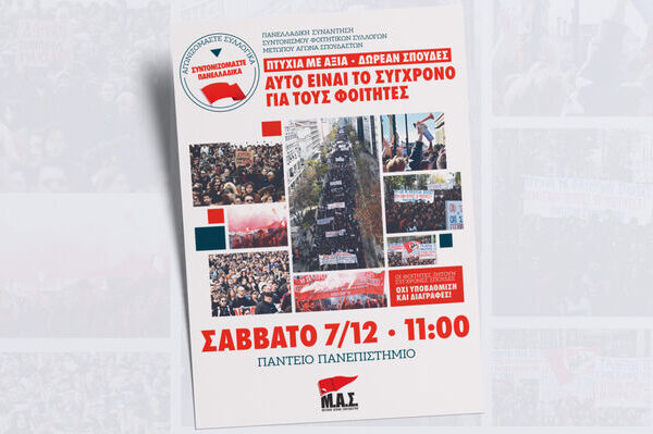 Με μεγάλη επιτυχία ολοκληρώθηκε το απόγευμα του Σαββάτου 7 Δεκέμβρη η Πανελλαδική συνάντηση συντονισμού φοιτητικών συλλόγων του Μετώπου Αγώνα Σπουδαστών! Στη συνάντηση συμμετείχαν 121 Φοιτητικοί Σύλλογοι και 20 επιτροπές αγώνα από τα Πανεπιστήμια όλης της χώρας, πολλοί από τους οποίους για πρώτη φορά αναγνωρίζοντας τον σημαντικό ρόλο του ΜΑΣ στην ανάπτυξη, τον προσανατολισμό και την…