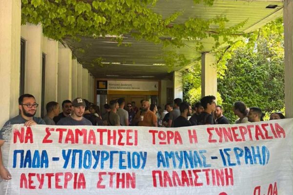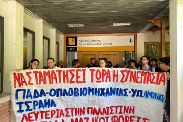Μαχητική παρέμβαση πραγματοποίησαν οι Φοιτητικοί Σύλλογοι του Πανεπιστημίου Δυτικής Αττικής στην διοίκηση του ιδρύματος και του ΕΛΚΕ, απαιτώντας να σταματήσει τώρα η συνεργασία του ΠΑΔΑ με την ισραηλινή οπλο-βιομηχανία και το υπουργείο Άμυνας του κράτους – δολοφόνου του Ισραήλ.