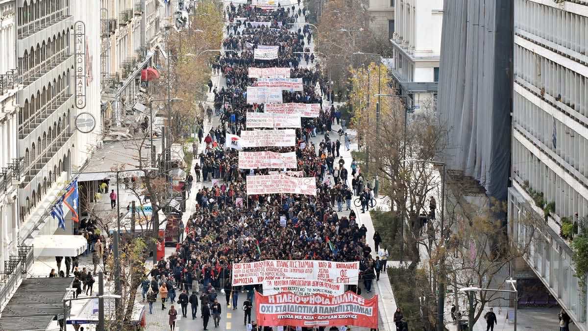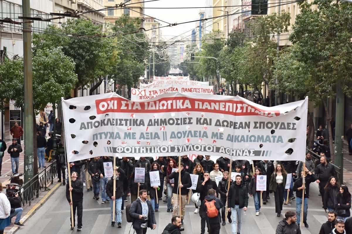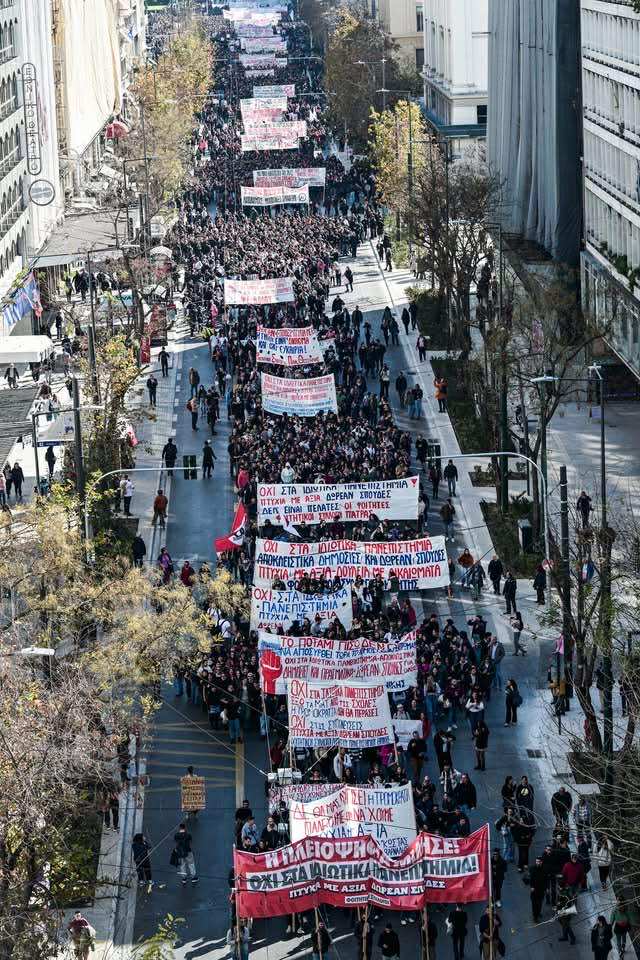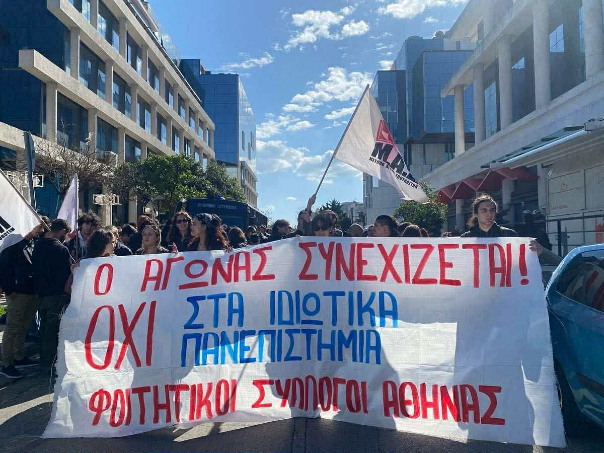 Όλο αυτό το χρονικό διάστημα απο τα τέλη του 2023 μέχρι και σήμερα χιλιάδες φοιτητές βρισκόμαστε διαρκώς στους δρόμους ώστε το νομοσχέδιο των ιδιωτικών πανεπιστημίων να μην περάσει!