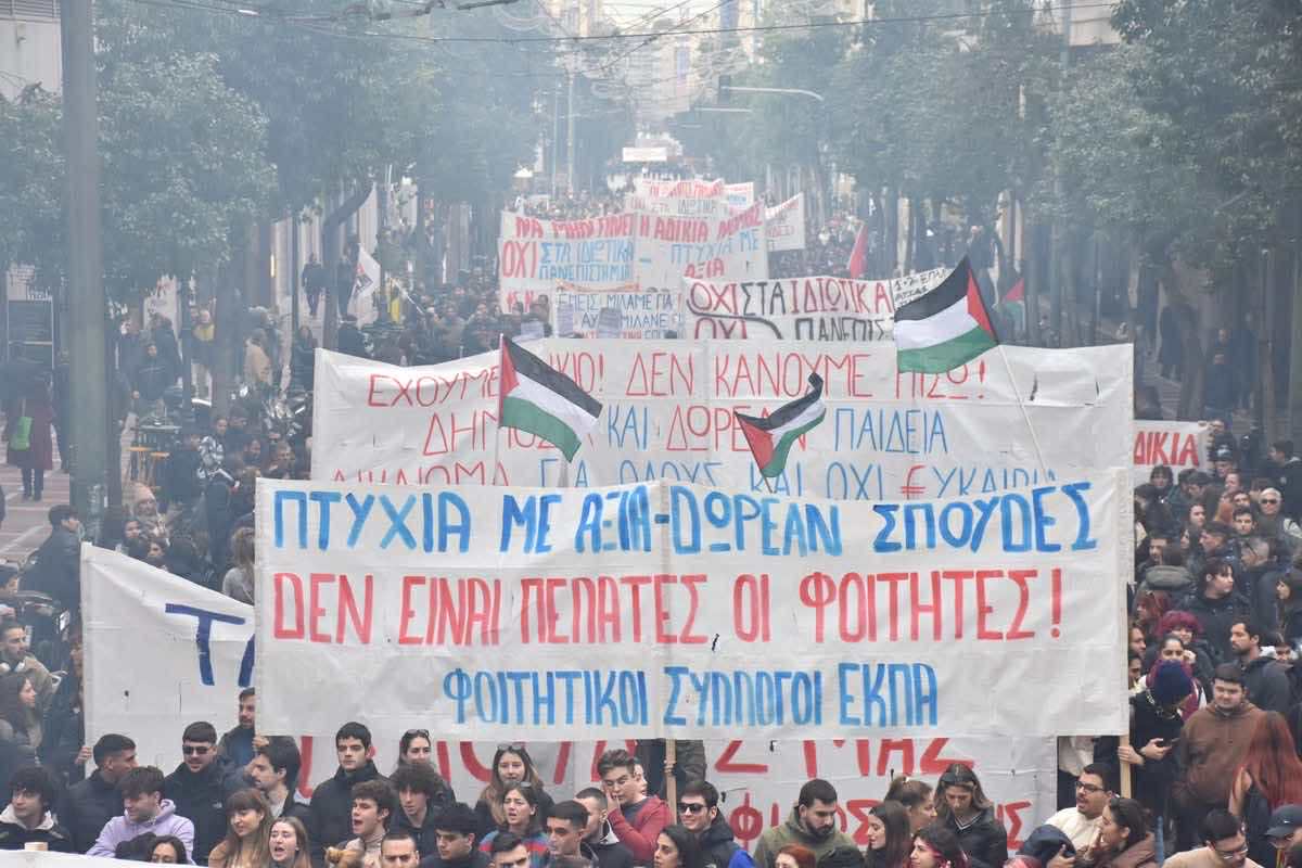 Επιβεβαιώνεται ότι δεν λογαριάζουν τις σπουδές μας ούτε τις ζωές μας για όφελος των κερδών τους. Απέναντι στην ολομέτωπη επίθεση στα δικαιώματά μας, στη ζωή μας, με την αντιλαϊκή πολιτική που κλιμακώνεται, την επίθεση στο εισόδημα των οικογενειών μας, την ακρίβεια, την αβάσταχτη φορολογία, το τσάκισμα των εργασιακών μας δικαιωμάτων σηκώνουμε ανάστημα. Δεν αποδεχόμαστε να δίνονται δισεκατομμύρια για την εμπλοκή της χώρας μας στους σχεδιασμούς των ΗΠΑ-ΝΑΤΟ-ΕΕ, σε πολεμικές συγκρούσεις, για να σφάζεται ο λαός της Παλαιστίνης που δίνει ένα δίκαιο αγώνα, να στέλνεται ελληνική φρεγάτα σε αποστολές εκτός συνόρων.