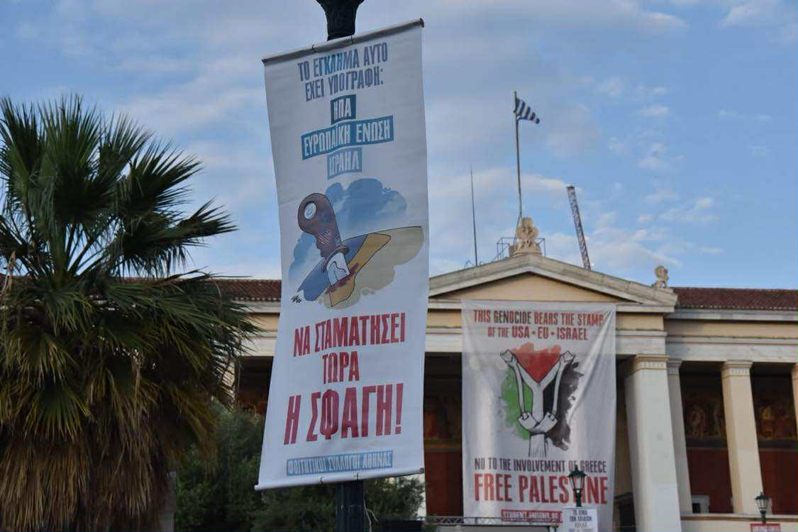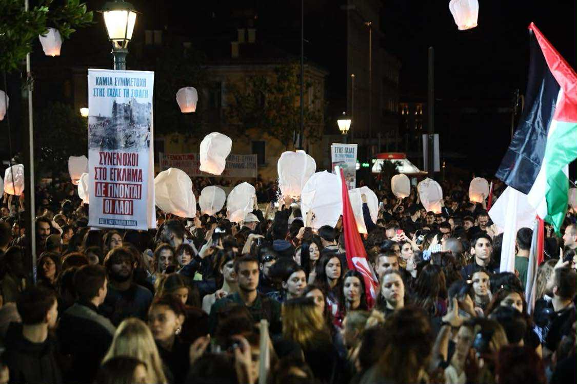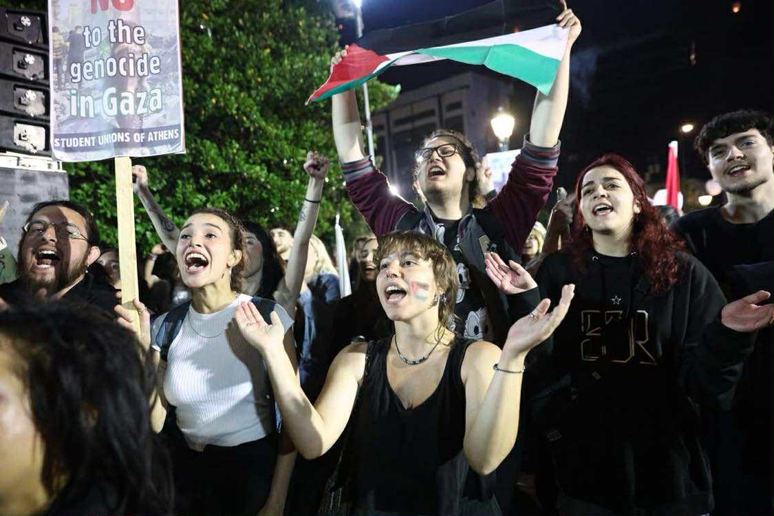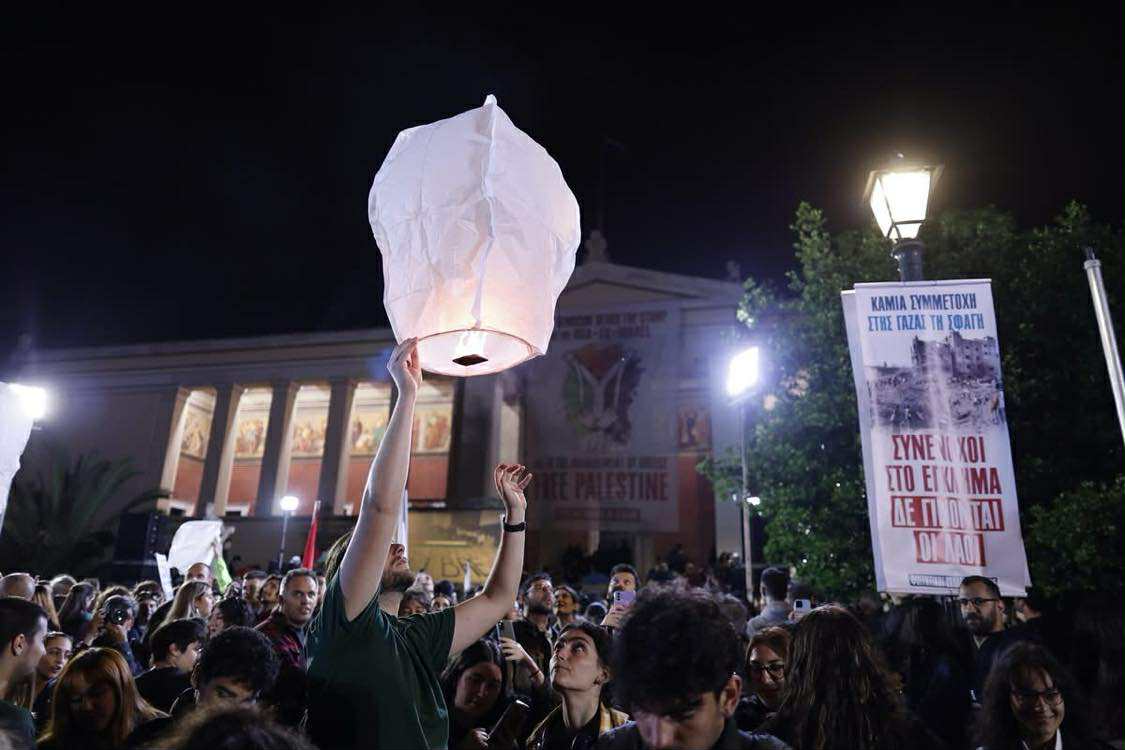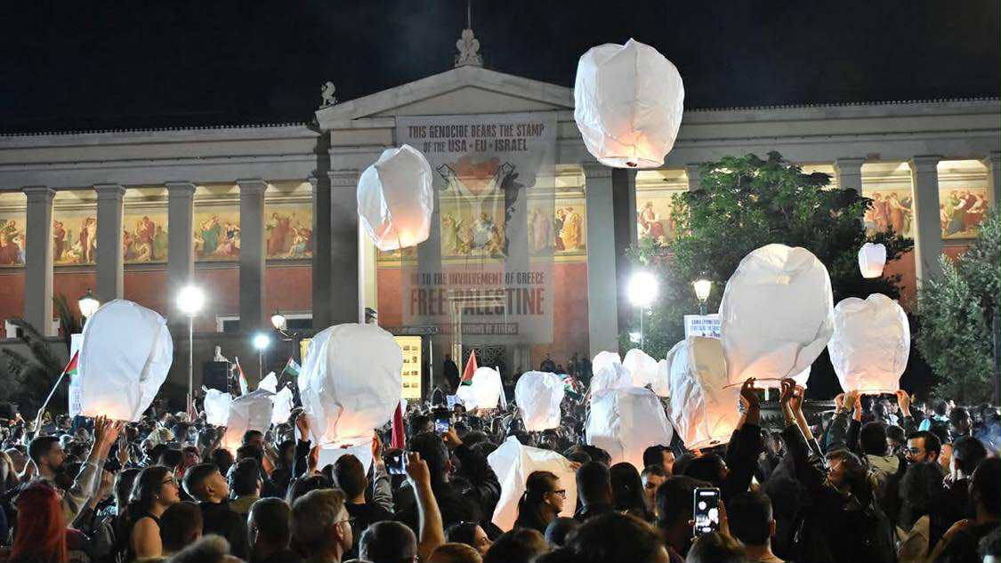 Μια φωνή, χιλιάδες καρδιές, που δε σηκώνουν το άδικο, γροθιές που σφίγγονται από την απαίτηση να σταματήσει η σφαγή στην Παλαιστίνη, μια μεγάλη αλυσίδα αλληλεγγύης για τον σκληρά δοκιμαζόμενο και πάντα ηρωικό λαό της Παλαιστίνης, που όλο και μεγαλώνει! Από το κέντρο της Αθήνας μέχρι την Παλαιστίνη, από το κτίριο της Πρυτανείας του Πανεπιστημίου Αθηνών μέχρι κάθε σχολή ανά τον κόσμο που γίνεται εστία καταδίκης του εγκλήματος και αλληλεγγύης, οι φοιτητές στάθηκαν στη σωστή πλευρά της ιστορίας, στο πλευρό του Παλαιστινιακού λαού.