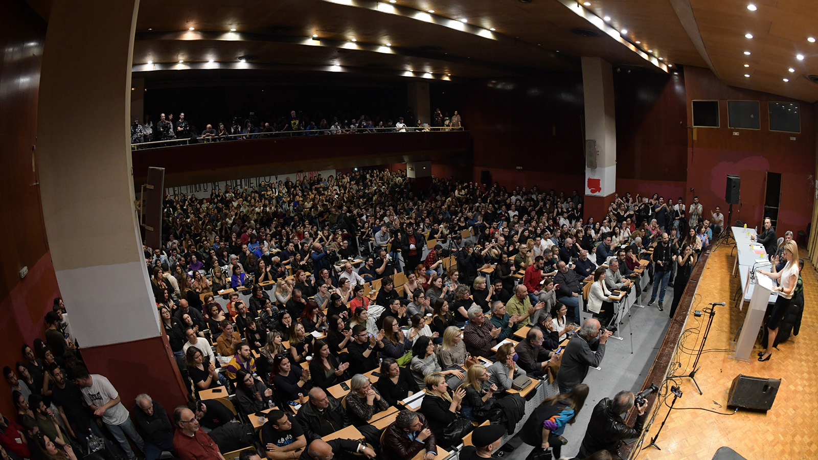 «Όλων των νεκρών είμαστε η φωνή: Το έγκλημα αυτό να μη συγκαλυφθεί» βροντοφώναξαν οι φοιτητές και πλήθος κόσμου κάθε ηλικίας, υποδεχόμενοι με ένα παρατεταμένο θερμό χειροκρότημα τους ομιλητές του πάνελ της εκδήλωσης που έγινε στο Πάντειο Πανεπιστήμιο για τα δύο χρόνια από το έγκλημα στα Τέμπη και γέμισε ασφυκτικά όχι μόνο την αίθουσα της εκδήλωσης, αλλά ακόμα και την αυλή του Παντείου, όπου πολύς κόσμος παρακολουθούσε από οθόνες.