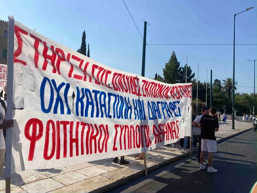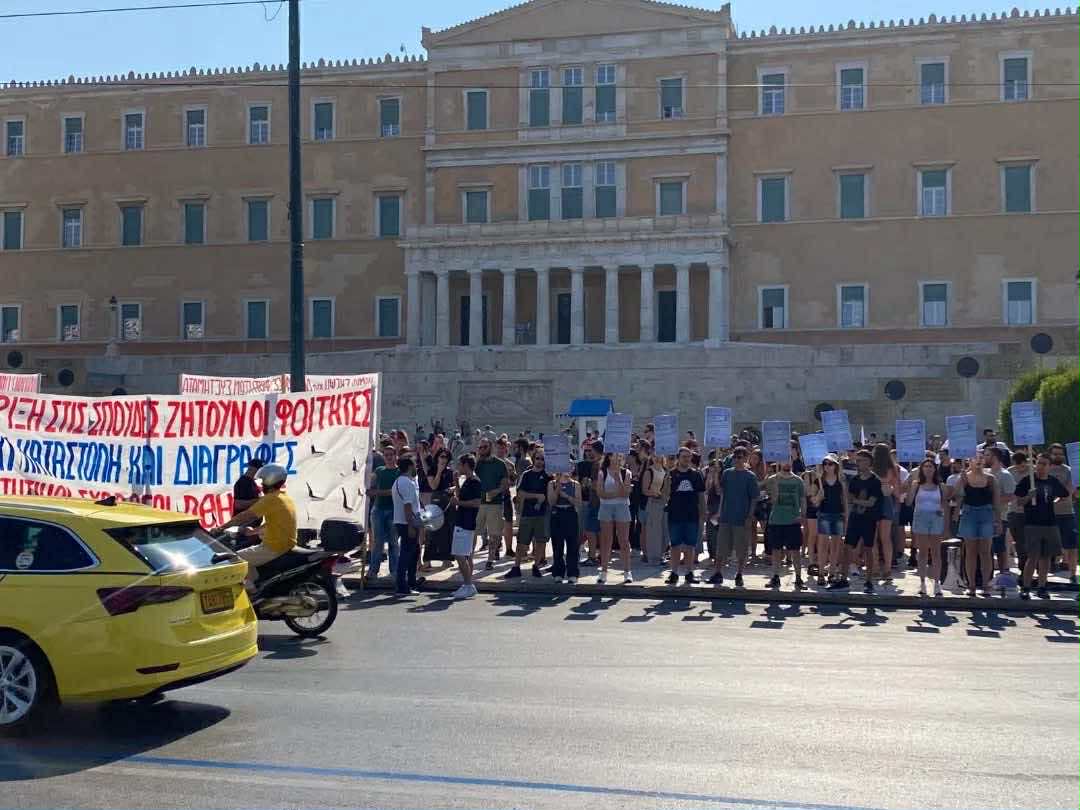 Σήμερα με τη μαχητική μας κινητοποίηση έξω από την Βουλή την ώρα που διεξαγόταν η συζήτηση για το νομοσχέδιο έκτρωμα για τις διαγραφές και την καταστολή στα πανεπιστήμια, στείλαμε ένα δυναμικό μήνυμα στην κυβέρνηση μέσα στο κατακαλόκαιρο: “όσα σχέδια κι αν κάνει, δεν μπορεί να λογαριάζει χωρίς τους φοιτητές”.