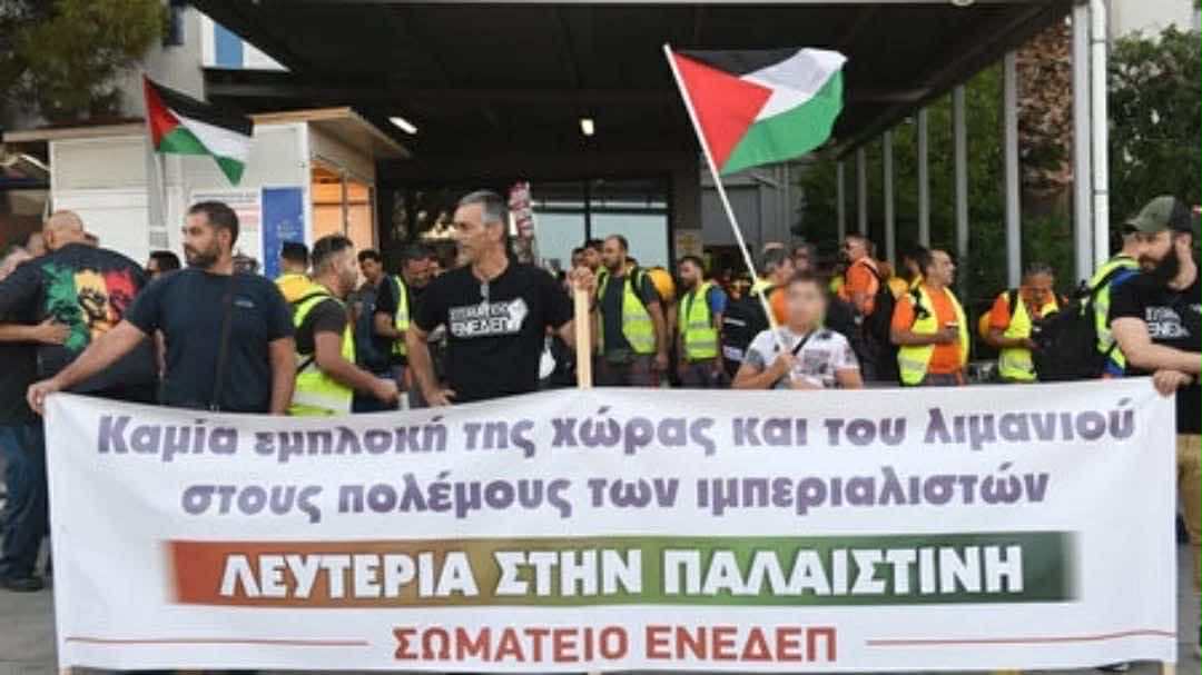 Ηχηρό «στοπ» στην εμπλοκή και στην στήριξη της γενοκτονίας του παλαιστινιακού λαού από το κράτος – δολοφόνο του Ισραήλ, έβαλαν οι λιμενεργάτες της COSCO, με το σωματείο τους ΕΝΕΔΕΠ, έχοντας στο πλευρό τους το Εργατικό Κέντρο Πειραιά, σωματεία, τους Φοιτητικούς Συλλόγους.