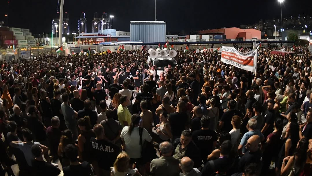 Όλο το βράδυ λιμενεργάτες και εργαζόμενοι του Πειραιά φύλαγαν το κοντέινερ να μην φορτωθεί στο καράβι «Marla BULL». Το κοντέινερ τελικά ΔΕΝ φορτώθηκε και το πλοίο έφυγε χωρίς σφαίρες για το Ισραήλ.