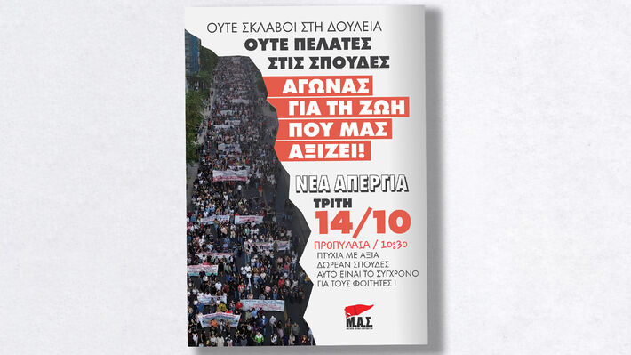 «Ούτε σκλάβοι στη δουλειά – ούτε πελάτες στις σπουδές!» Όλοι στην απεργία στις 14 Οκτώβρη