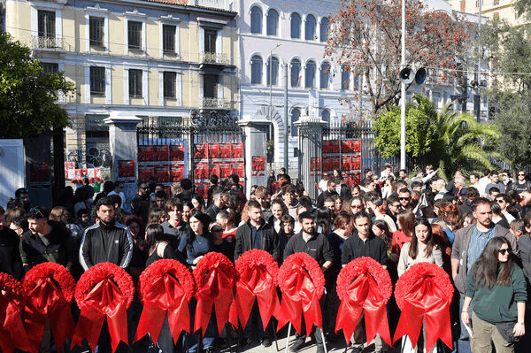 Με πολύ μεγάλη συμμετοχή και παλμό πραγματοποιήθηκε η μεγάλη αντιιμπεριαλιστική πορεία προς την αμερικανική Πρεσβεία για την 52 επέτειο του ξεσηκωμού του Πολυτεχνείου το 1973. Δεκάδες φοιτητικοί σύλλογοι μετά το κλείσιμο της πύλης στον ιστορικό χώρο, συγκεντρώθηκαν στα Προπύλαια όπου και ξεκίνησαν την πορεία. Στην κεφαλή της πορείας στο πανό αναγράφεται “Το Πολυτεχνείο ζει Οργάνωση…